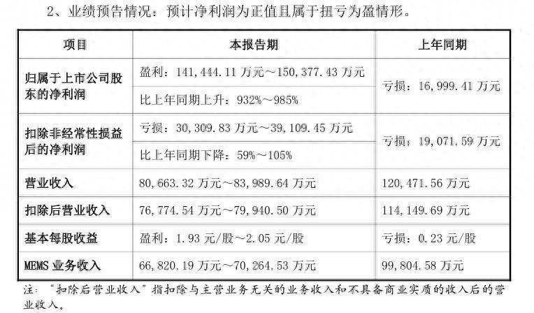 1月27日,赛微电子(300456)发布公告,公司预测2025年归母净利润14.1亿元至15.0亿元,同比增长932%至985%,较客岁同期去世1.70亿元已毕扭亏为盈;预测扣非净去世3.03亿元至3.91亿元,同比着落59%至105%;预测贸易收入8.07亿元至8.40亿元,较客岁同期有所着落。