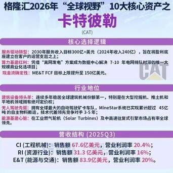 再比如卡特彼勒,有句话叫作念“地球工程的黄与黑”,它指卡特彼勒的工程机械。