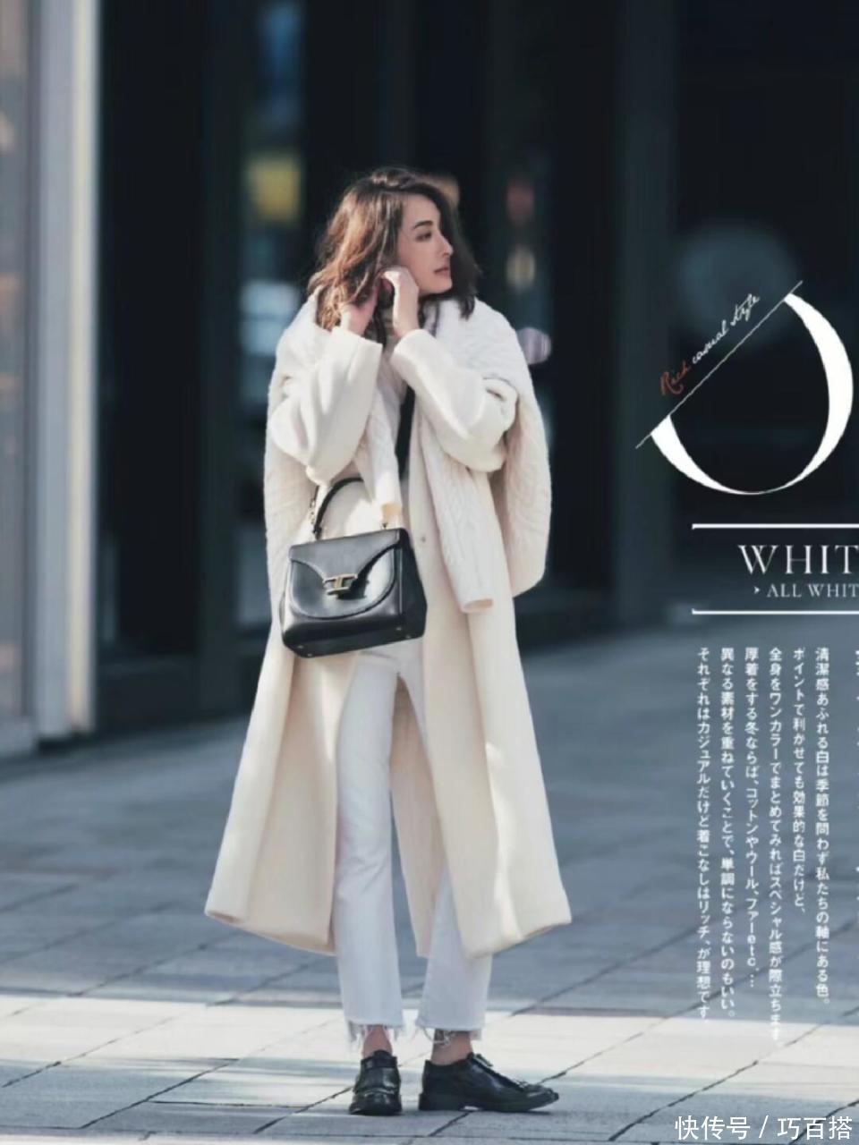 外扎腰带的修身款白色毛呢大衣和自领导巾式的白色毛呢大衣是为数未几值得一试的款。平方情况下,全身淡色系的搭配模式,不错眨眼间赚足回头率!