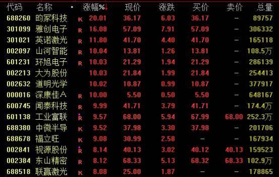 挥霍电子看法盘中走势活跃,苹果看法股发扬亮眼。摈弃收盘,昀冢科技20%涨停,雅创电子涨约16%,英诺激光涨近12%,江山智能、环旭电子、大为股份、闻泰科技等均涨停。