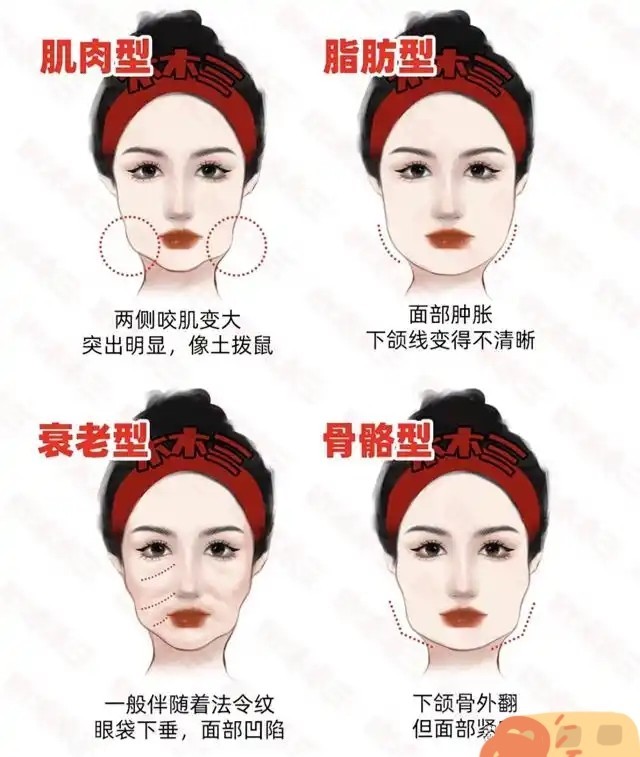 脂肪型:长胖之后,脸部就会变得肥胖,下颌线变得不明晰。