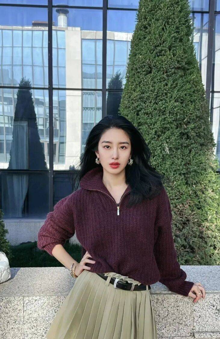 清冷冬季,我们十足不错聘任一件棕紫色的毛衣,搭配上一条卡其色的压轴半身裙,穿的时候把衣角塞进裙子内部,勒上玄色的腰带,就能造成高腰线,再相关大波澜的鬈发造型,画着一款细腻的妆容,就能让你秒变成气质女神。